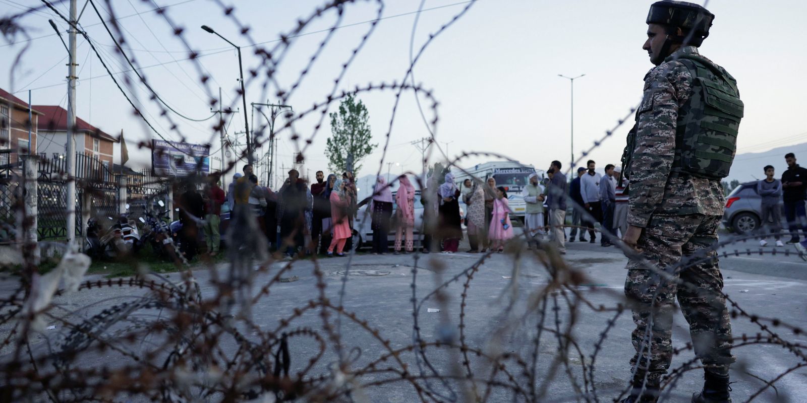 Indian security personnel stand guard on a road outside the Haj House as pilgrims depart for Mecca for the annual pilgrimage to the holiest place for Muslims, in Srinagar, Indian Kashmir, May 14, 2025. Reuters/Sharafat Ali/Proibida reprodução