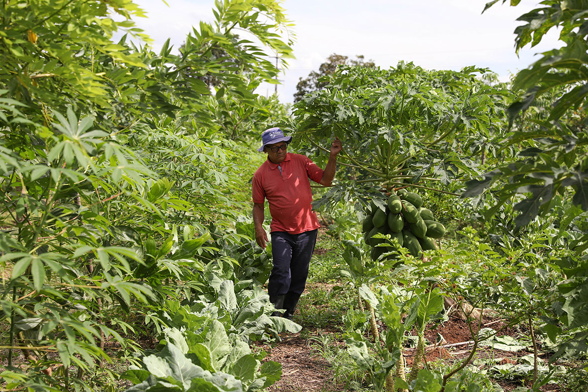 O produtor rural Jovino Rodrigues Correia, 67 anos, foi um dos 51 cidadãos que receberam a documentação neste ano. A propriedade dele no Assentamento Três Meninas tem plantações de berinjela, mamão, couve-manteiga e limão, que, até então, eram cultivadas como convencionais, ou seja, usando agrotóxicos. Com o certificado, ele mudou o modo de plantio e vai começar a entregar para o programa de aquisição escolar. “Na primeira compra terei 600 kg de limão orgânico para vender para o governo. Se não conseguir mandar tudo, posso vender como convencional. Estou muito animado, acho que vai ser ótimo para nossa renda”, comemorou.