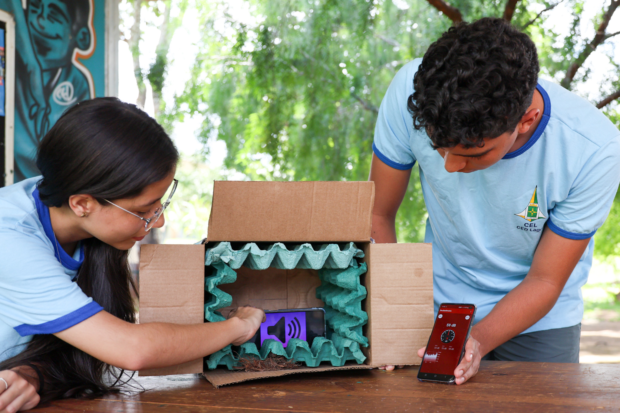 Proporcionar um ambiente escolar mais adaptado às necessidades dos alunos exige criatividade e dedicação. No Centro Educacional (CED) do Lago, essa premissa foi abraçada pelos estudantes Santiago Araújo e Ana Elise Carvalho Leite, que desenvolveram o projeto Acústica Verde, iniciativa voltada a minimizar o vazamento sonoro entre as salas de aula.